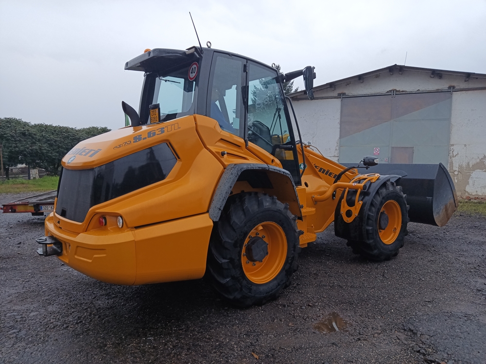 Teleskopický kolový nakladač. Motor 136 HP, zdvihová kapacita 3200 kg, hmotnost 8400 kg, max. rychlost 40km/h. Ke stroji je lopata - 1,2 m3 a paletizační vidle.