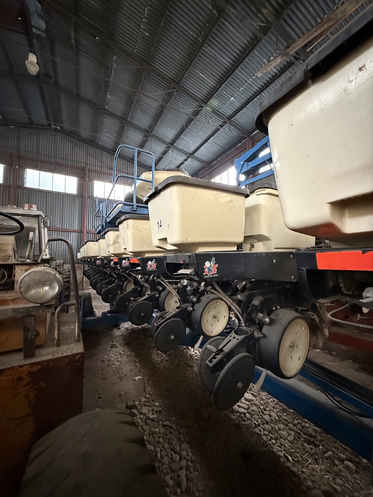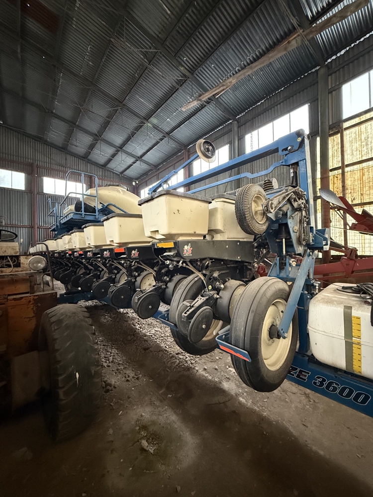Přesný secí stroj Kinze 3600 ASD 16 řádků na rozteč 75 cm včetně přihnojování na granule. Podtlakové výsevní ústrojí, monitor Integra, elektromagnetické spojky (vypínání botek) zvlněné koltry pro přípravu seťového lůžka (No Till), jednodiskové zapravovače hnojiva, nádrž a aplikace pro kapalné inokulanty. Zásobníky na insekticidy pro každý řádek. Pneumatický přítlak na řádky. Odpracováno 5.000 ha.