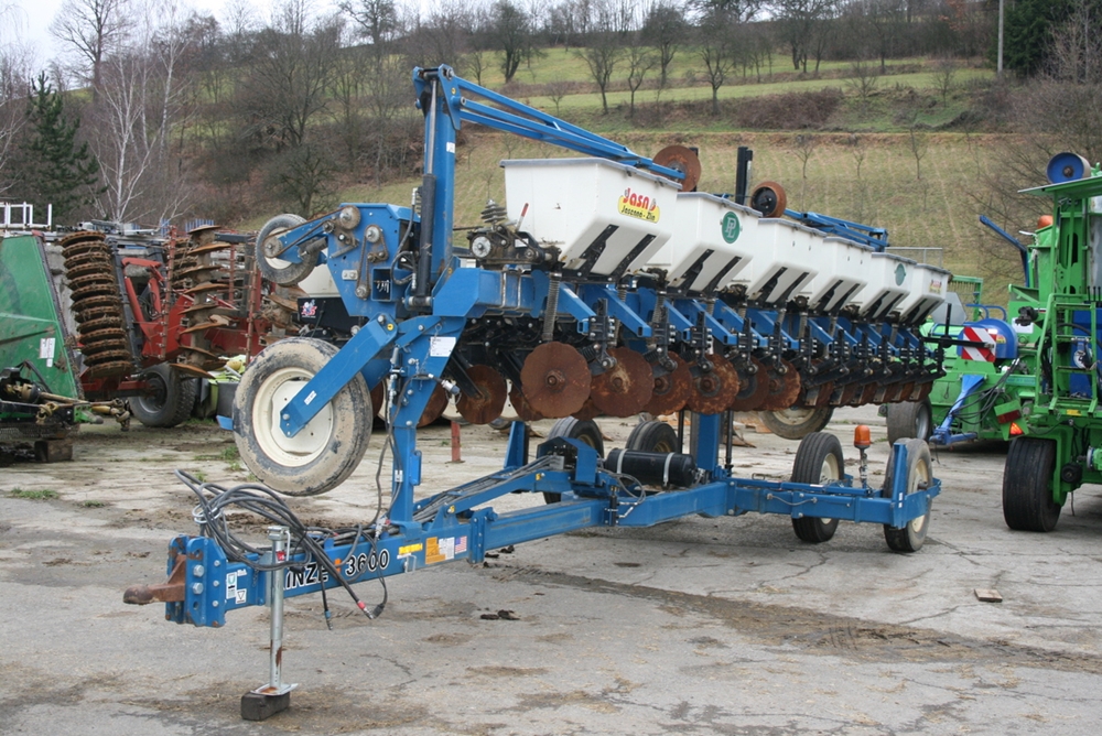Bezorebný mechanický secí stroje KINZE 3600 pro setí kukuřice, slunečnice. Záběr 12 řádků, příhnojování pod patu, samostatné kopírování jednotlivých sekcí. Plně funkční, více informací po telefonu.