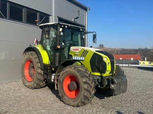 Traktor CLAAS Arion 650 CIS +, cca 3.300 mth, 151 kW, plynulá převodovka, čerpadlo hydrauliky LS 110 l/min., odpružená náprava, 4 el. hydr. okruhy, přední + zadní závaží, pneu: 540/65 R28 a 650/65 R38. Vše funkční, více informací po telefonu.