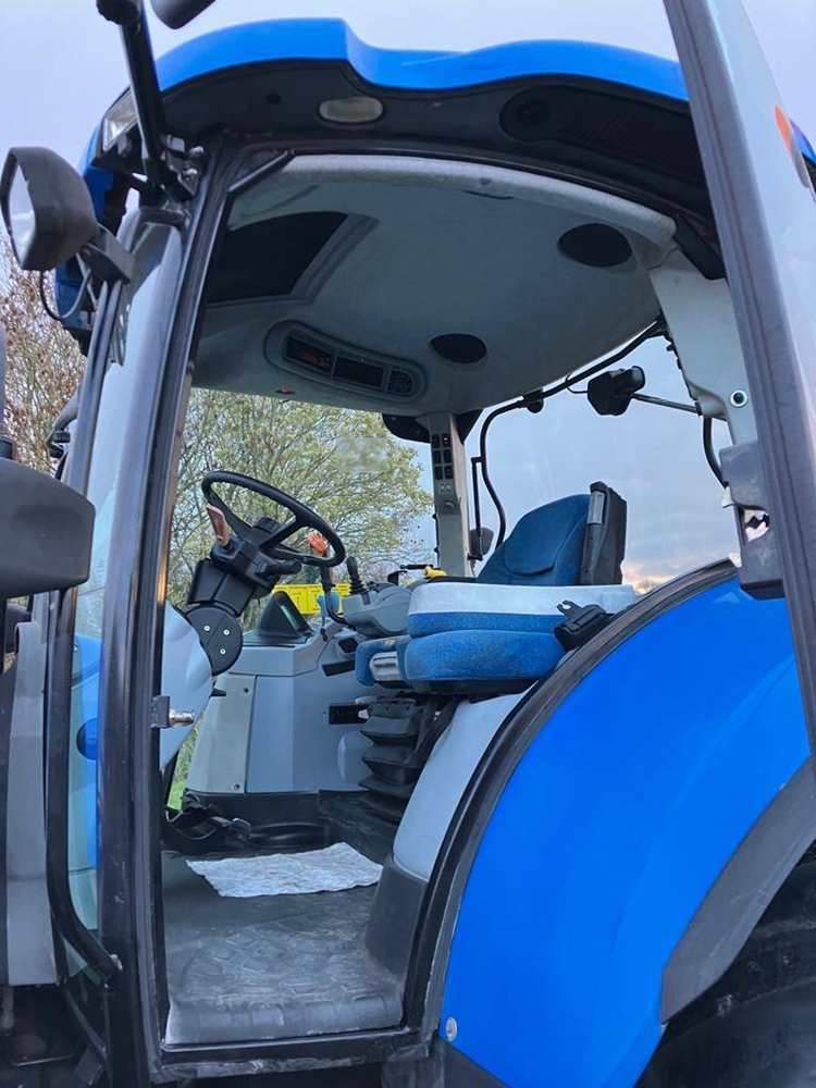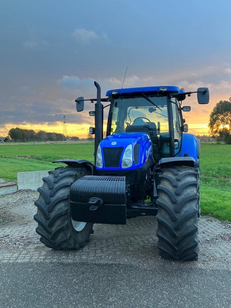 New Holland T6070 Range Command, 7.500 mth, 141 koní, 6 válec, odpružená přední náprava a kabina, 4 el. hydraulické okruhy, přední závaží, vzduchové brzdy, klimatizace, rádio, pneu: 540/65 R28 a 650/65 R38, vše funkční, více informací po telefonu.