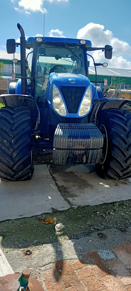 Traktor NH T7.270 Auto Command, 6.766 mth, přední závaží + závaží v kolech, et. závěs + K80, pneu: 600/60 R30 a 710/60 R42. Vše funkční.