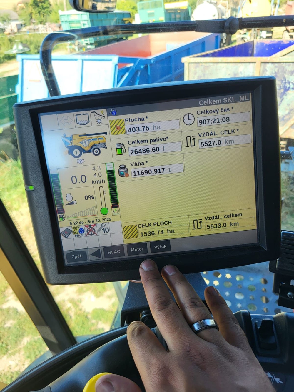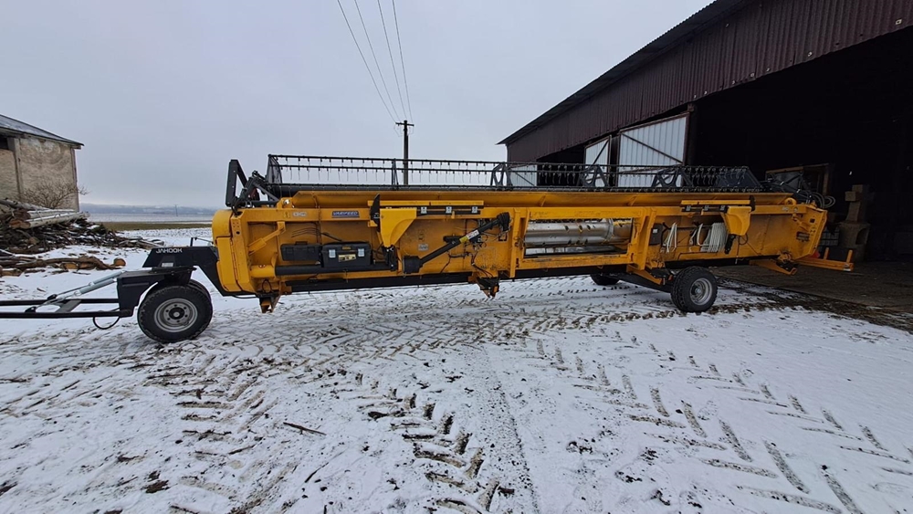 Stroj má cca 907 motohodin, 404 ha, byl pravidelně servisován a je ihned připraven k provozu. Žací lišta: 9,15 m Varifeed s přepravním vozíkem, dělený mláticí buben, řepková výbava. Laser Pilot – automatické vedení po řádku, výnosoměr + vlhkoměr, drtič slámy, systém automatického řízení, automatické vyrovnání síťové skříně, automatický variátor vytřasadel, automatická klimatizace, loketní opěrka s multifunkční pákou, odvětrávaná sedačka pro maximální pohodlí, tempomat, rádio s Bluetooth připojením, monitor s přehledným ovládáním, lednička, elektricky nastavitelná zrcátka, aktivní děliče, kamerový systém – vzadu, na výložníku i závěsu, přidaný rozvod vzduchu po celém stroji. Kombajn je čistý, udržovaný a plně funkční, v perfektní technické kondici.